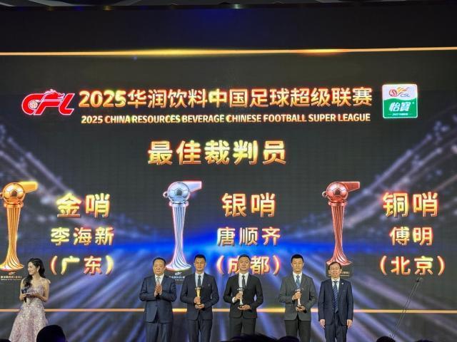 中超聯賽:金哨 李海新(廣東)、銀哨 唐順齊(成都)、銅哨 傅明(北京)