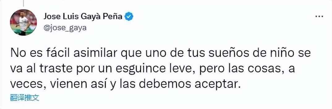 因傷退出世界盃後第2天,27歲的西班牙左後衛加亞在社交平臺上首度發聲。