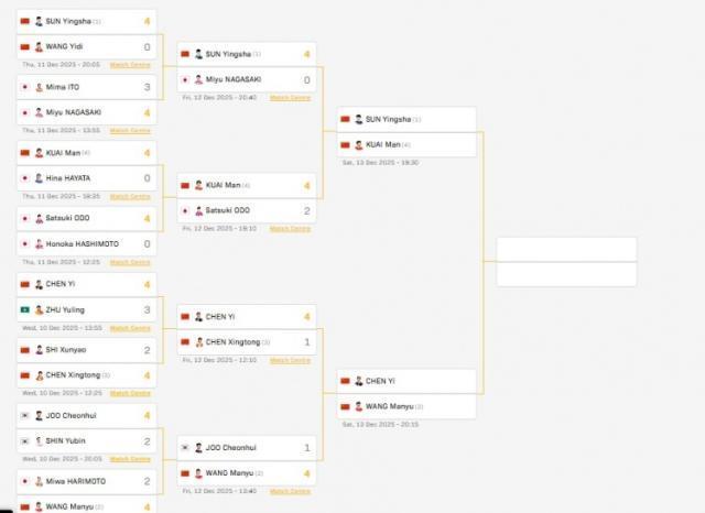 WTT總決賽女單四強:孫穎莎vs蒯曼、王曼昱vs陳熠