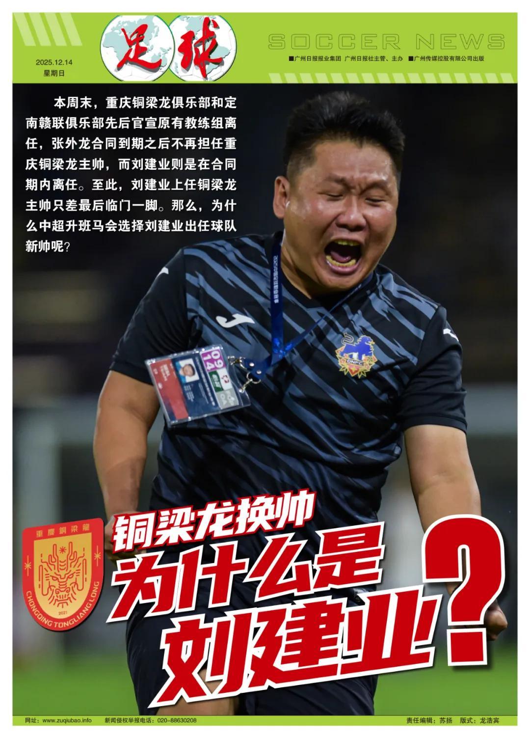 記者魯蜜報道 本週末,重慶銅梁龍俱樂部和定南贛聯俱樂部先後官宣原有教練組離任,張外龍合同到期之後不再擔任重慶銅梁龍主帥,而劉建業則是在合同期內離任。至此,劉建業上任銅梁龍主帥只差最後臨門一腳,重慶銅梁龍俱樂部也將在今日官宣他的團隊上任。