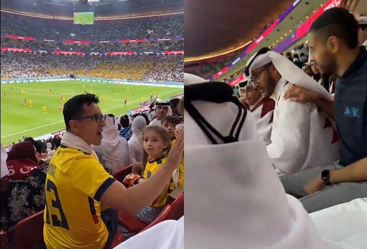 厄瓜多爾球迷這挑釁動作,其實很多卡塔爾土豪也不怎麼在意,但有一位卡塔爾球迷實在忍不住了,就跟對方互噴了起來。當時場面一度失控,以爲兩人準備要開幹了。