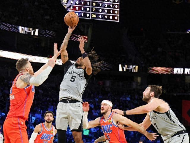 這場比賽,卡斯爾在第一節得到7分,第二節得到2分。第三節比賽,卡斯爾貢獻了7分。他在進攻端的表現很穩定。馬刺在末節一度領先雷霆6分,但是在雷霆打出進攻浪潮,在比賽時間還剩6分鐘時以93比90領先3分。