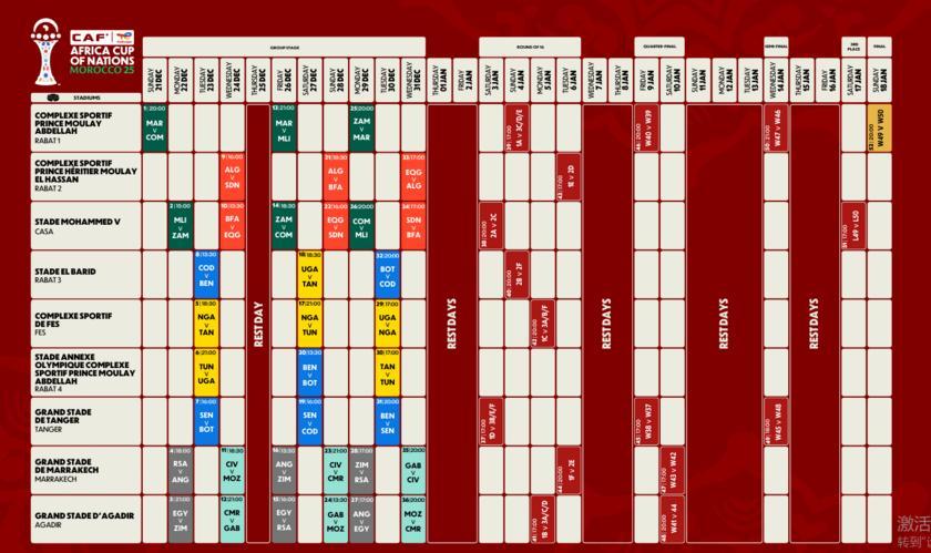 2025年12月22日,非洲杯即將打響,多個國家從五大聯賽召回球員爲國出征,以下是非洲杯的分組和在五大聯賽人員抽取的名單以及小組出線的預測: