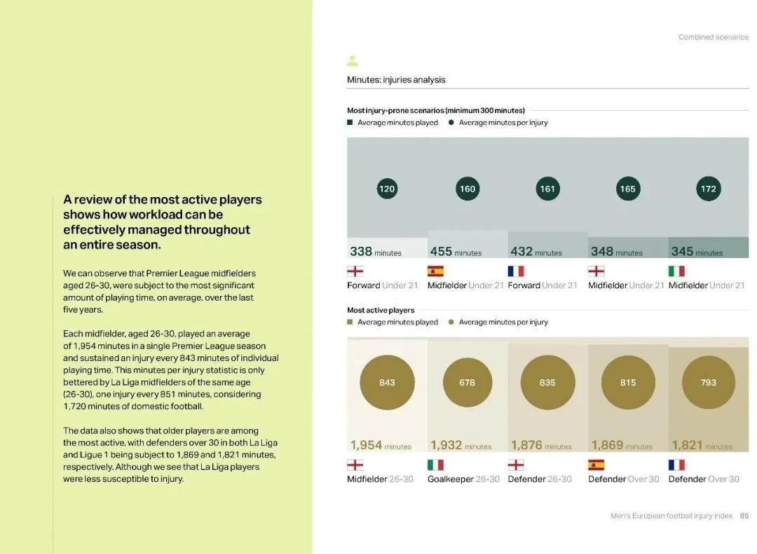 英超U21前鋒平均踢120分鐘就有1名受傷,受傷概率幾乎是全體球員(338分鐘)的3倍。精英運動員傷病風險專家索普認爲,近年英超普遍將更多年輕球員提拔上一線隊,他們過早接受英超高強度快節奏的衝擊,傷病概率增加是意料中事。