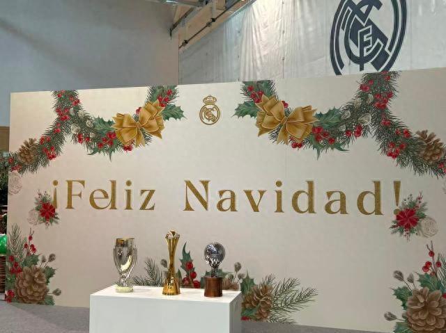 又是一年聖誕節前夕,本週一皇馬按照慣例在訓練基地召開招待會,宴請來自世界各地常年現場報道自家比賽的記者們,筆者也有幸受邀參加了聖誕媒體招待會。比起去年招待會上一整排包括歐冠、西甲在內的重量級獎盃,今年會上的獎盃分量實在是拿不出手,甚至還要把上賽季奪得的歐超杯和洲際盃冠軍拿來充數。招待會上皇馬主席弗洛倫蒂諾、榮譽主席皮裏和公關部主任布特拉格諾等人均親自接待各方嘉賓,弗洛倫蒂諾發表了聖誕賀詞,也是幸虧前一天晚上皇馬客場驚險贏下阿拉維斯,才讓受邀的老記們暫時放下阿隆索帥位安穩與否的話題,樂樂呵呵地過個年。