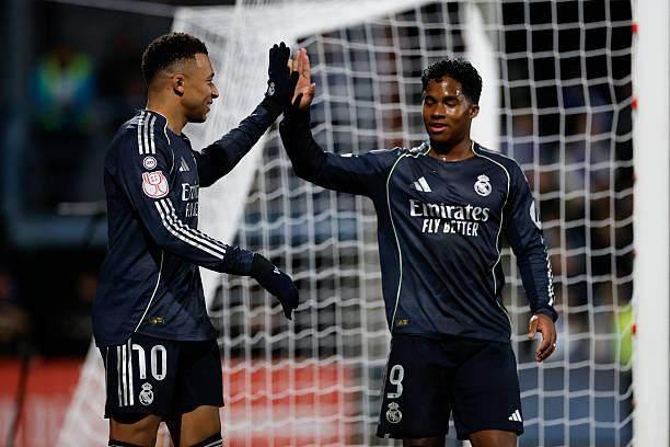 此役阿隆索安排恩德里克和貢薩洛搭在鋒線搭檔姆總,作爲正印中鋒的貢薩洛支點作用明顯,難得首發的恩德里克也表現活躍,多次利用個人能力突破對手防線並串聯起中前場,也讓姆巴佩有了充分的發揮空間,法國人打出弧線球射門,可惜被對方門將化解。皇馬雖然開局遭遇一些麻煩,但整個上半場基本控制着局勢,只是取得領先的方式略顯爭議,塔拉韋拉球員馬科斯·莫雷諾禁區內手臂觸球被判罰點球,但慢鏡回放顯示他似乎先用頭頂到球,由於現場沒有VAR,判罰無可更改,姆巴佩主罰命中。下半場決定比賽的還是姆巴佩,他的突破傳球造成對手烏龍球,並在塔拉韋拉扳回一球不久後打出標誌性遠射破門。