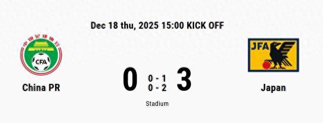 12月18日,U15東亞杯第一輪,中國U15對陣日本U15。最終,憑藉沢口榮太、飯田蒼生和磯部憐夢的破門,日本隊以3比0取勝,中國U15遭遇開門黑。