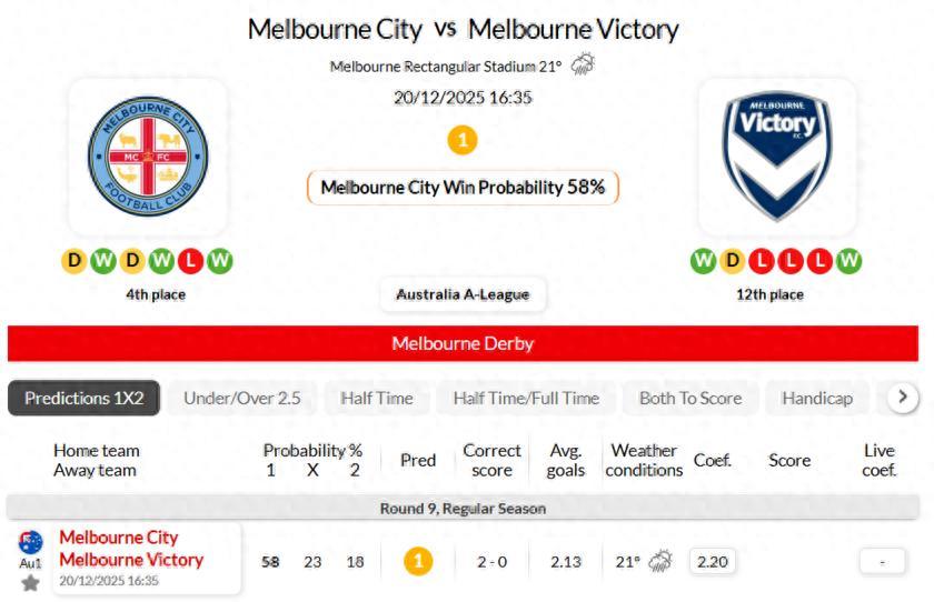 墨爾本城在國內聯賽中正處於連續7場主場不敗的勢頭