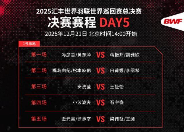 北京時間12月21日,2025年世界羽聯巡迴賽總決賽將展開五個單項的最終決賽。中國選手將向四個單項的冠軍發起衝擊。
