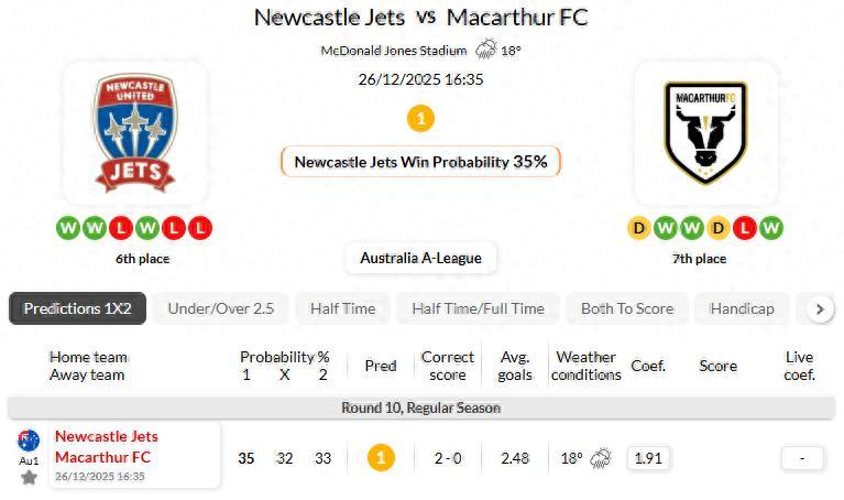 紐卡斯爾噴氣機近7次澳超聯賽面對麥克阿瑟FC有6次保持不敗