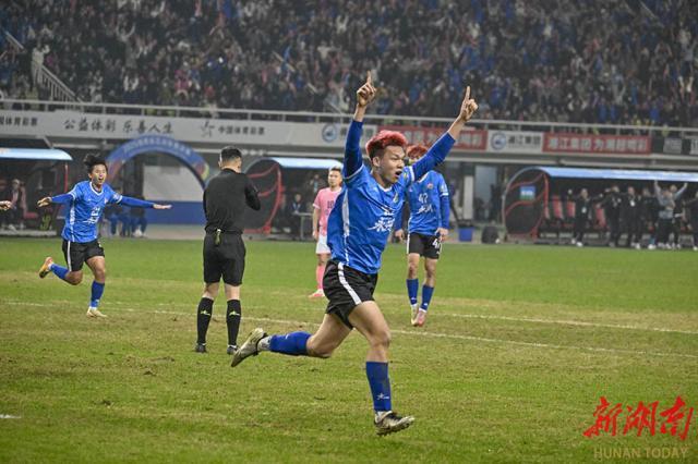 12月27日晚,財信金控2025年湖南省足球聯賽(“湘超”)總決賽在長沙賀龍體育場上演,最終,永州隊憑藉谷文傑下半場的頭球補射,1比0擊敗常德隊,奪得冠軍。