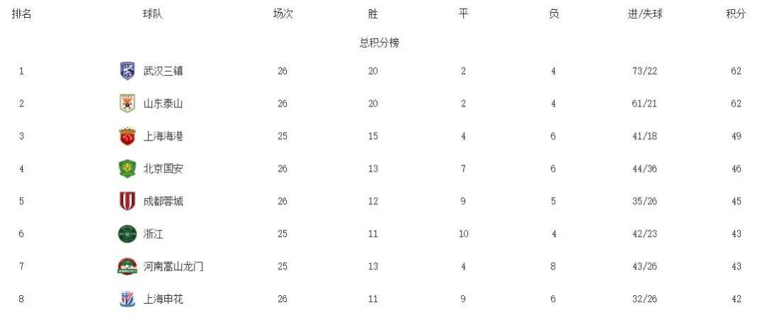 在領先僅僅一輪之後,山東泰山1比2不敵成都蓉城,在積分榜上又被武漢三鎮超越,在爭冠層面上,山東泰山和武漢三鎮又在同一條起跑線上,但因爲淨勝球的原因,泰山隊稍稍落後。或許,山東泰山和武漢三鎮的直接對決,纔是冠軍爭奪的關鍵所在。