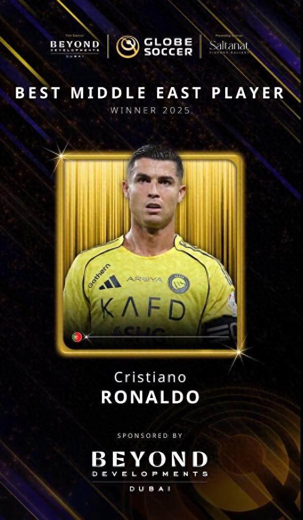 官方:C羅榮膺2025環足獎年度最佳中東球員