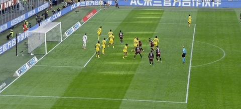 精彩時刻:第45分鐘,拉比奧頭球擺渡,普利希奇後點推射破門,米蘭1比0領先