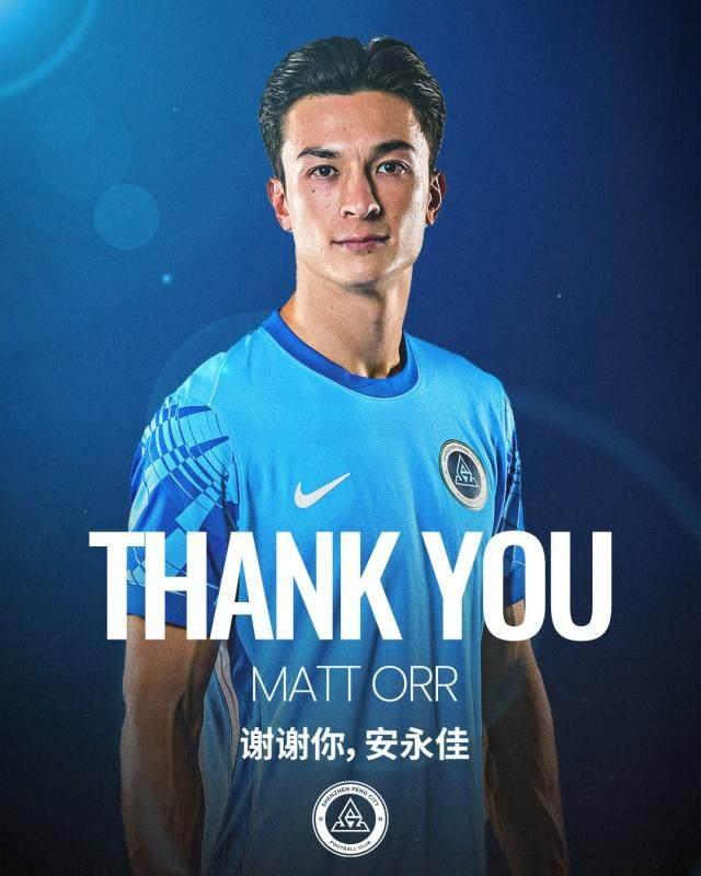 深圳新鵬城足球俱樂部今日宣佈,安永佳(Matt Orr)將在合同期滿後正式離隊。