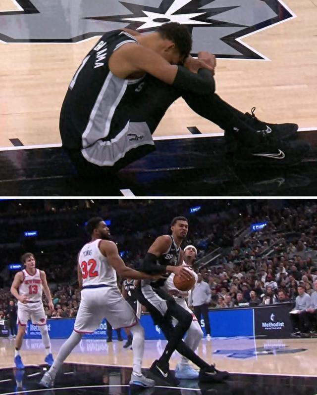 在今天結束的一場比賽中,聖安東尼奧馬刺以134比132擊敗了紐約尼克斯。不過,在比賽進行到第四節還剩下10分鐘左右時,球隊內線核心文班亞馬在拼搶籃板時受傷倒地。