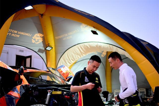中國參賽車隊和車手自然是我次詞采訪的主要對象。31日下午,組委會爲參賽車輛在離大營20公里開外的地方設立了試車區,已經進入大營的中國車隊昨天都進行了例行的試車。九江車隊的12人中新人佔了一大半,陶永明、付立國、範高翔、徐苯煬、田雷、張彪彪、桂海波等。在營地的隨意交談裏他們說:試車很順利,期待着這款中國自主研發的賽車能經受漫長嚴苛的馬拉松賽段的考驗。說到新人,韓魏賽車隊的三個車組也有一半的新人。除了韓魏、馬利和田坡,哈斯牧仁、王國瑞、田宇都是第一次參賽。雖是新人,但他們都“非常快”!