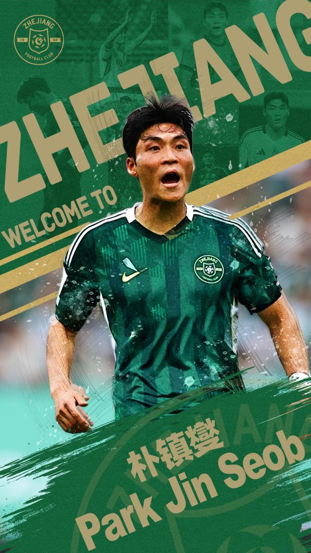 1月3日,中超浙江隊與全北現代俱樂部共同官宣,韓國籍國腳樸鎮燮加盟浙江隊。