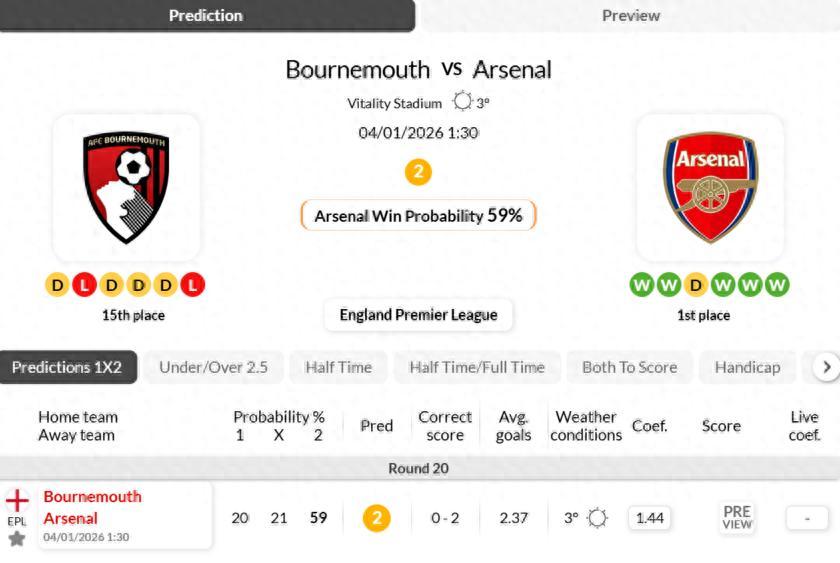 伯恩茅斯vs阿森納