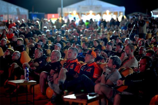 1月1日晚7點,每屆賽事最爲重要的全體賽員大會在贏得中心活動區舉行,達喀爾賽事總監大衛·卡斯特拉親自上臺,向全體賽員介紹了即將開始的發車儀式和排位賽的情況,他的法語發言現場進行了英語和西班牙語的同聲傳譯,會場大屏演示的文檔上包括賽事注意事項和路書示意圖。賽員大會是組委會強制所有賽員必須參加的正式會議。會議現場的座椅是工作人員在當天下午擺放好的,大會開始前已經被坐得滿滿當當,晚到的只好站在座席的四周,這其中包括達喀爾先生彼德漢塞爾、納尼·羅馬、英格蘭摩托車手桑德蘭、澳大利亞鐵漢羅比·普萊斯。
