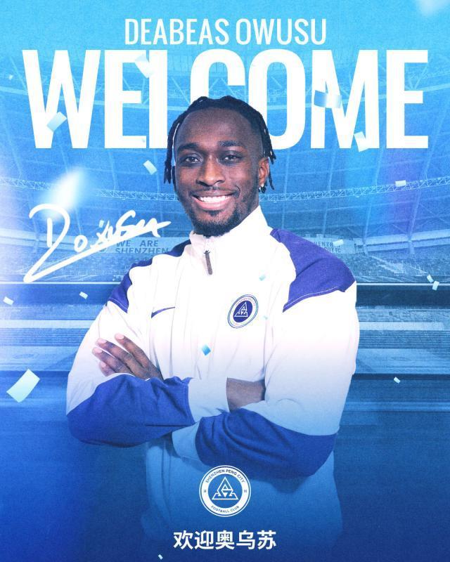 深圳新鵬城足球俱樂部今日宣佈,迪比斯·奧烏蘇(Deabeas Owusu-Sekyere)正式加盟球隊。