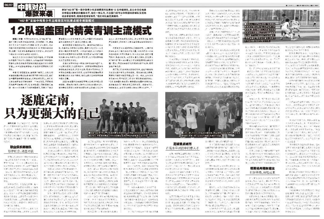 撰稿/左瑞 本週末坐鎮定南,爲“462杯”第一屆中韓青少年足球精英對抗賽共同守擂的一方,是來自中國共8個省份和直轄市的12支U15球隊。與到訪的同年齡段韓國球隊抗衡的這12支國內青訓勁旅,涵蓋了國內足壇精英青訓的主流模式,足以全方位地展示中國足球青訓的頂級水平。