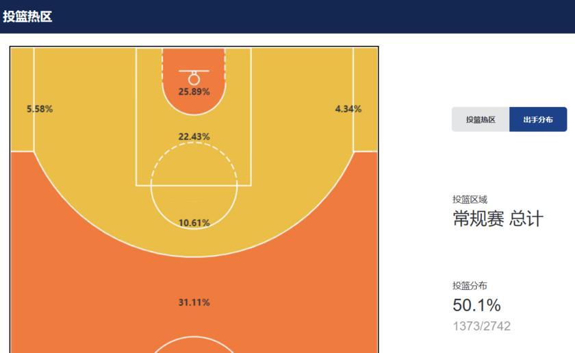 湖人在外線出手佔比最高的情況下命中率較低