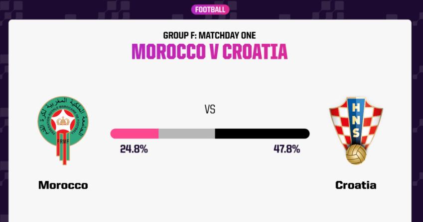 雙方的差距不算特別大,但上屆亞軍克羅地亞還是稍微被更看好一些,他們的贏球概率爲47.8%。而摩洛哥的贏球概率爲24.8%。