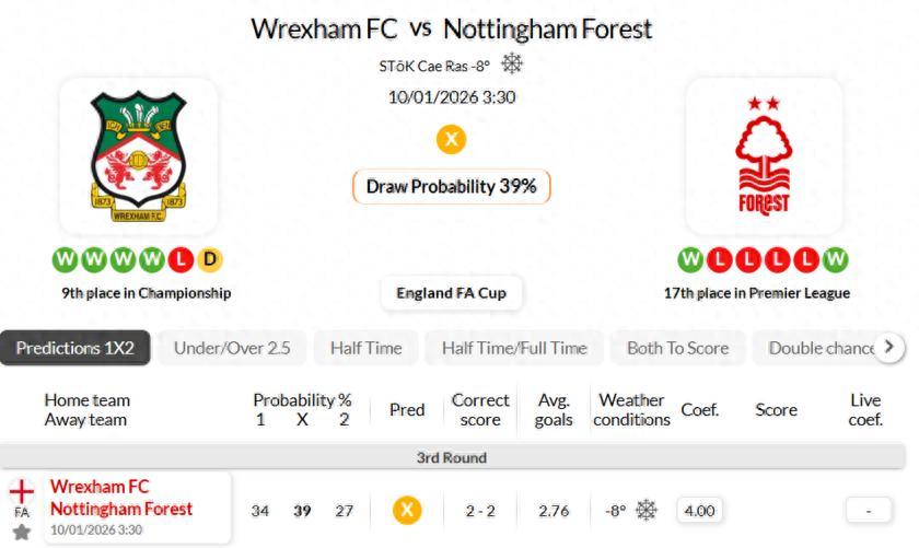 雷克瑟姆最近6場主場比賽取得4場勝利
