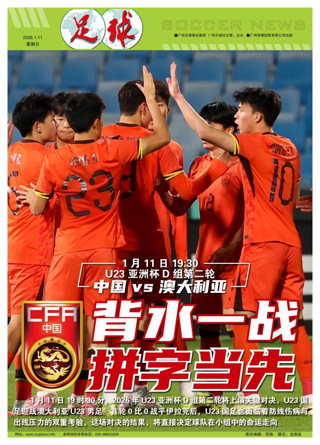 撰稿/魯蜜、寒冰 1月11日19時30分,2026年U23亞洲盃D組第二輪將上演關鍵對決,U23國足迎戰澳大利亞U23男足。首輪0比0戰平伊拉克後,U23國足也面臨着防線傷病與出線壓力的雙重考驗,這場對決的結果,將直接決定球隊在小組中的命運走向。