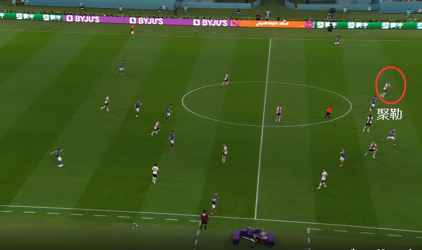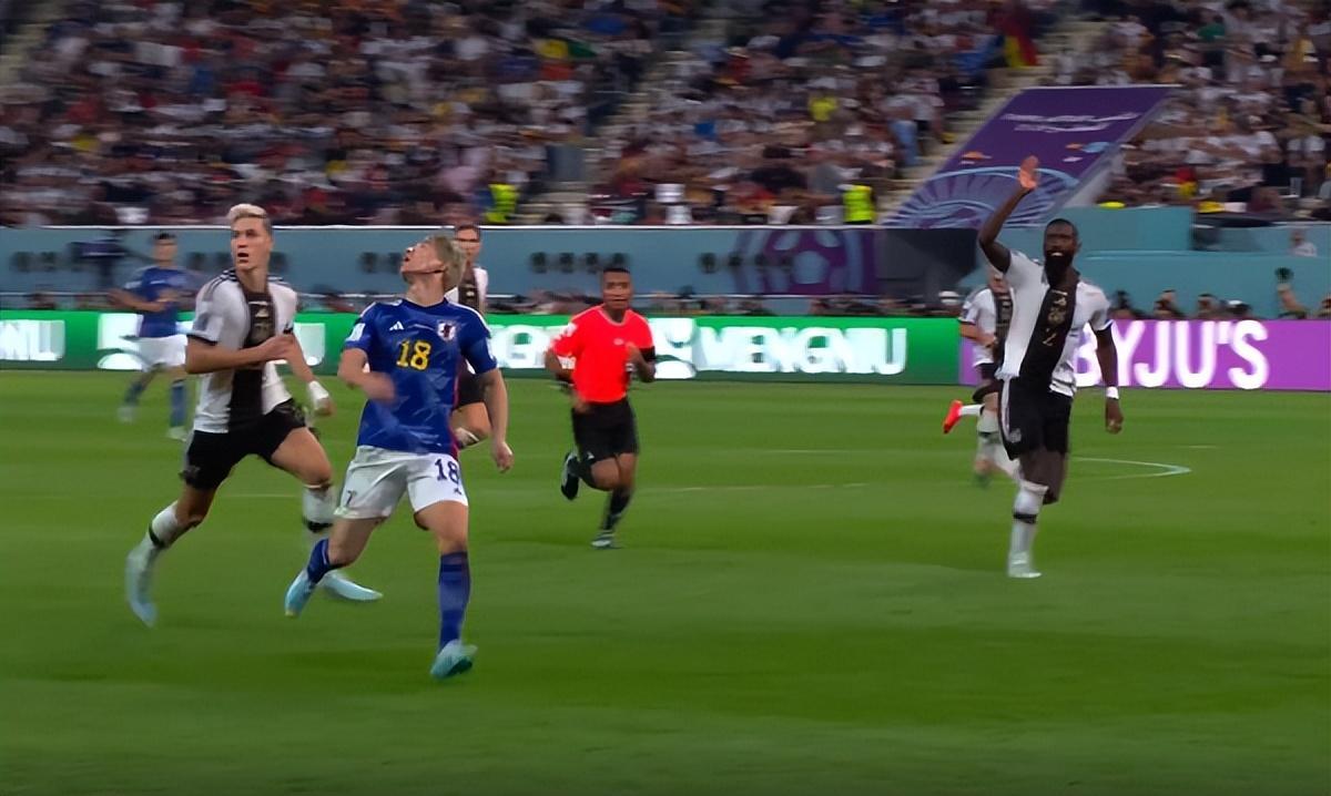 除此之外,本田圭佑還指出了德國隊的最大漏洞,那就是被弗裏克安排踢右後衛的德國航母聚勒。淺野拓磨爲日本隊打進絕殺的那個進球,就是因爲右後衛聚勒拖在了最後,導致沒能製造淺野拓磨越位。當時德國中衛呂迪格還單手高舉,示意淺野拓磨越位。