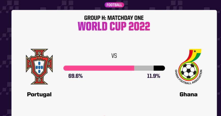 北京時間11月25日00:00,世界盃小組賽H組第1輪,葡萄牙對陣加納,央視CCTV5現場直播。
