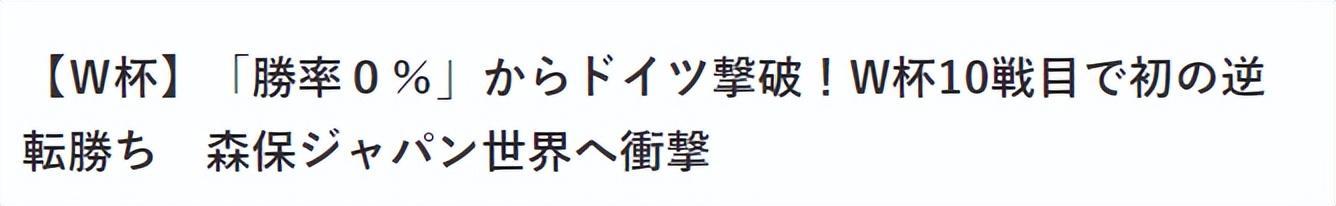 從1998年參加第一屆世界盃以來,日本隊在過去6屆世界盃出現過9次落後情況,最終戰績爲2平7負未嘗一勝。如今,日本隊終於在世界盃上完成了第一場逆轉。除此之外,這也是日本隊首次擊敗德國隊,此前他們交手2次,日本1平1負未嘗一勝。