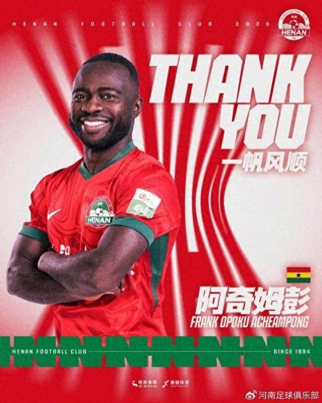 河南足球俱樂部球員阿奇姆彭、卡多索、尹鴻博、牛梓屹、黃紫昌、劉斌、盧永濤、何小珂、宋潤潼、張智豪合同到期,正式離隊。