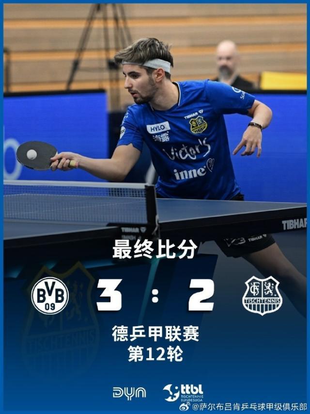 乒乓球德甲:薩爾布呂肯2比3客負多特蒙德