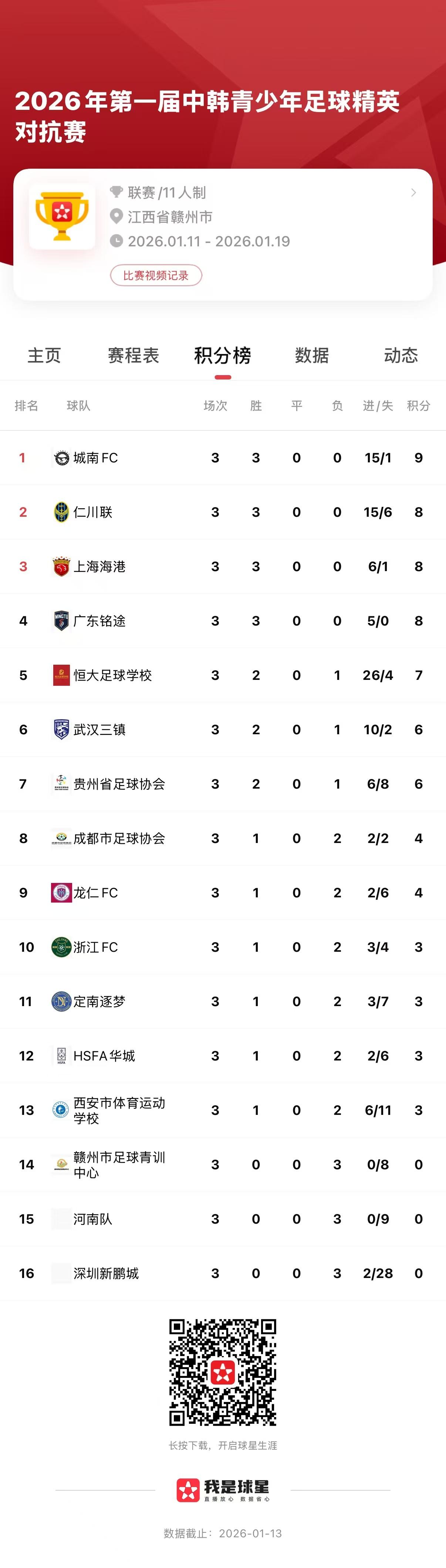 左瑞發自江西定南“462杯”第一屆中韓青少年足球精英對抗賽13日進入第三輪,韓方球隊贏得了三場中韓對抗,廣東銘途則以一場大勝捍衛了中方球隊的尊嚴。