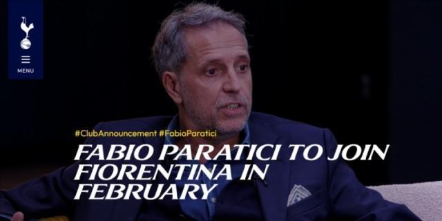 熱刺官方宣佈,體育總監帕拉蒂奇將在2月份離任,加盟意甲球隊佛羅倫薩。熱刺寫道:“我們確認,俱樂部體育總監法比奧·帕拉蒂奇將於2月離職,加盟佛羅倫薩。法比奧將在冬窗結束後前往這支意甲球隊,從而結束他在熱刺訓練基地的兩個任期——他的第一段任期始於2021年夏天。”熱刺首席執行官維奈·文卡特舍姆表示:“我們已經達成協議,法比奧將在1月轉會窗口結束後返回意大利,這符合他回到家鄉的心願。我們感謝法比奧對俱樂部的貢獻,並祝願他未來一切順利。我們的管理結構旨在應對人員變動,未來各項業務將照常進行。”帕拉蒂奇補充道:“我要感謝維奈和熱刺董事會能體諒我返回意大利並加盟佛羅倫薩的願望。我熱愛在俱樂部的時光。然而,這個機會加上定居祖國的需要,讓我做出了這個決定。熱刺是我深愛的俱樂部。這裏有很多優秀的人才,他們和我一樣對項目充滿熱情,並希望帶來持續的成功。我毫不懷疑他們會實現這一目標,我也將在意大利密切關注這一切。”