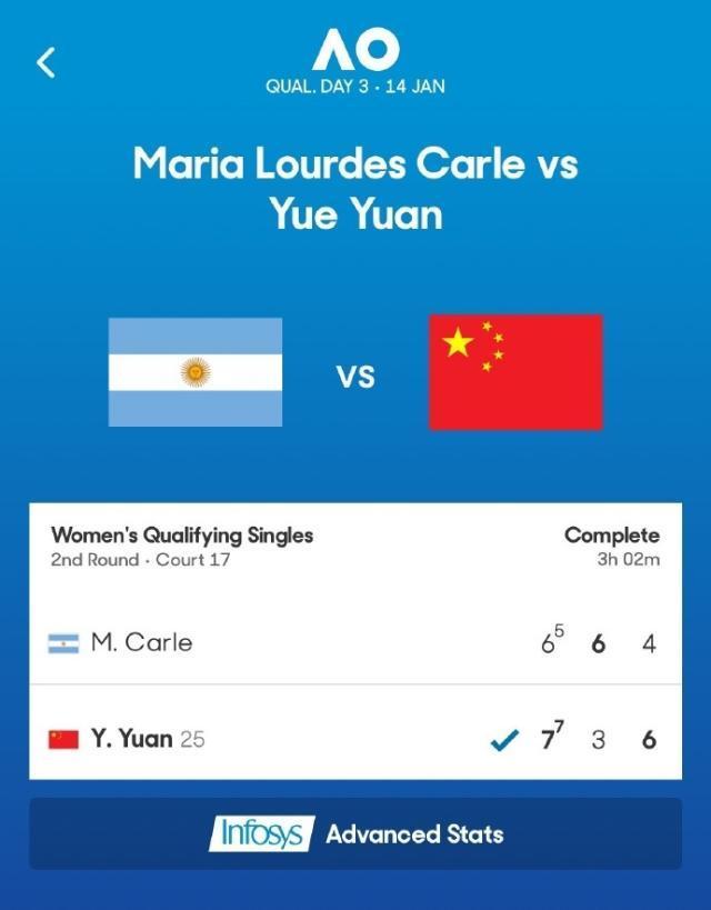 袁悅鏖戰3小時以2比1戰勝卡萊,晉級澳網女單資格賽決勝輪
