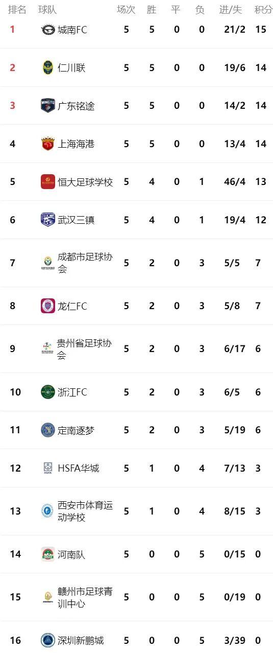 積分榜上,城南FC、仁川聯、廣東銘途、上海海港、恆大足校、武漢三鎮的前六地位已無法撼動,7分在手的成都足協、龍仁FC只要第六輪獲勝即可進入爭冠組,同積6分的浙江FC、貴州足協、定南逐夢也保留着晉級的希望。按照賽會規程,第二階段的最後兩輪排名對抗賽,將各有八支球隊進入爭冠組和排位組。