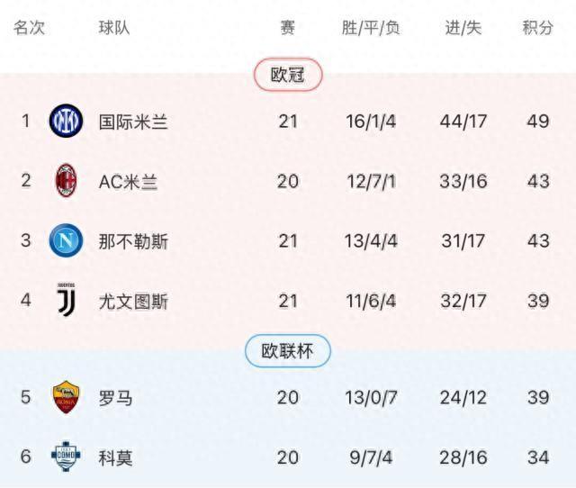 在上半程中,國際米蘭完成了對後段班球隊的通殺,拿滿了30分,而烏迪內斯剛好排名第10名,戰勝他們也代表了國際米蘭將“弱隊”的定義往上推進了一名,他們面對更多球隊都佔據着優勢,儘管最後的比分只是1比0,而且是連續兩場1球小勝。