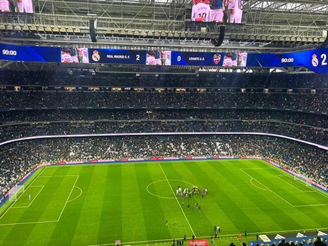現場的巨大噓聲之下,皇馬衆將在上半場面對積分榜排名第19位的萊萬特,也並未表現出更勝一籌的硬實力,前場的維尼修斯等人被噓到無法全力投入進攻,中後場也被球迷噓聲影響到失誤頻頻,並讓萊萬特打出幾次快攻,還在禁區前沿數次造成皇馬球員的犯規後獲得位置極佳的定位球。整個上半場比賽皇馬基本沒有製造出絕佳機會,伯納烏球迷也在半場結束時將更加持久且響亮的噓聲撒向場內。上半場唯一得到球迷掌聲的是小將貢薩洛,皇馬16號本場表現一如既往積極和努力,但出現在右邊鋒位置上的他對進攻端幾乎沒有起到任何作用,也在下半場伊始便被替換下場。