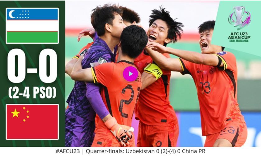 中國憑藉王鈺棟發出的定位球取得了本屆U23亞洲盃中國U23唯一進球