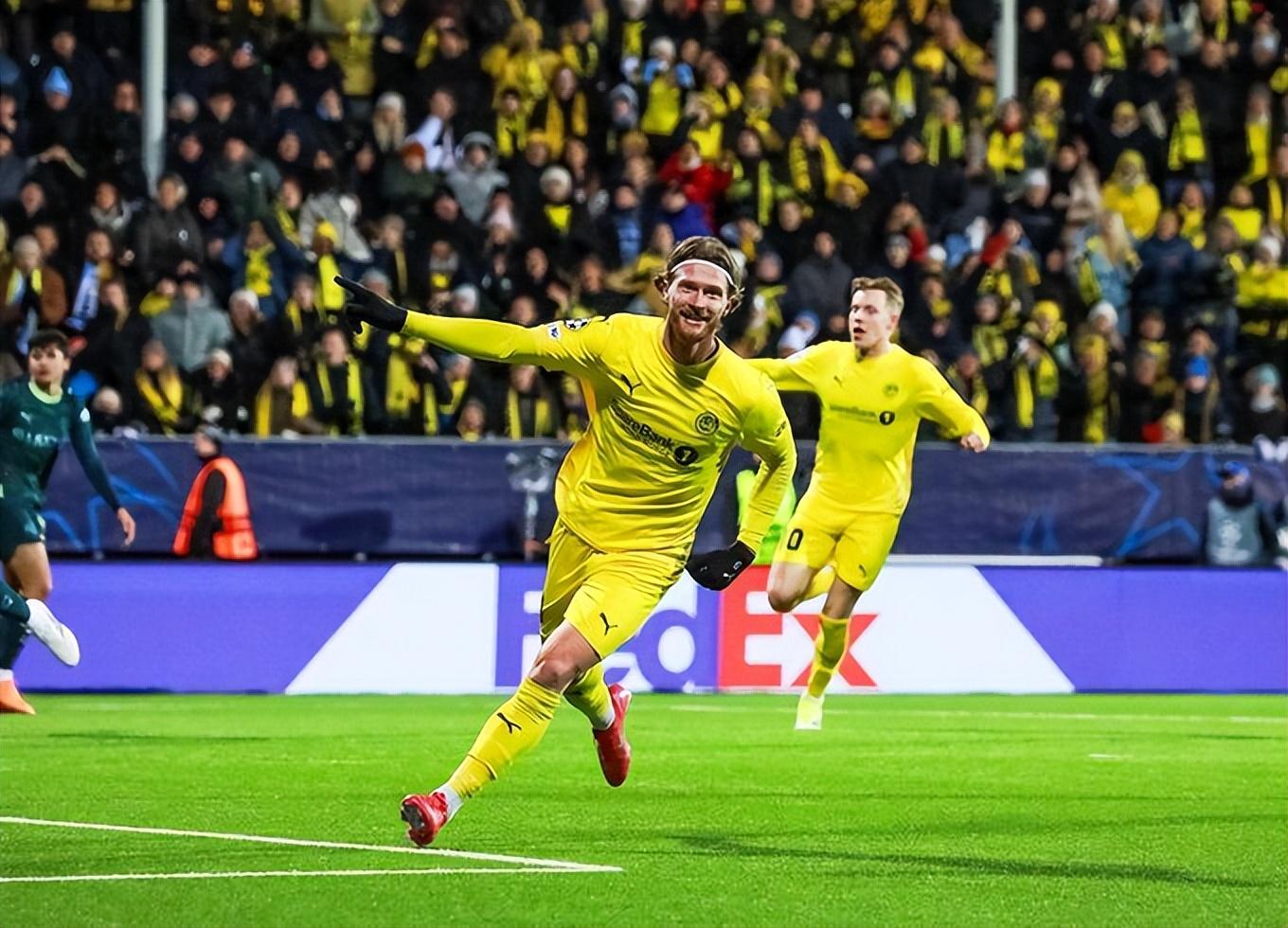 比賽第23分鐘,戰術藍圖轉化爲進球。曼城一次角球進攻未果,博德閃耀門將快速手拋球發動進攻,三腳傳遞後,皮球已來到曼城半場。鋒線尖刀卡斯珀·霍格(Kasper Høgh)利用對手年輕中衛的回追遲疑,冷靜推射遠角得手。北極圈內的寒夜被瞬間點燃。這僅僅是開始。七分鐘後,幾乎如出一轍的劇本再次上演:曼城前場傳球被斷,博德閃耀中場球員一腳穿透防線的直塞,霍格再次獲得單刀機會,他輕巧挑過出擊的門將,完成了上半場的梅開二度。兩個進球,兩次反擊,總計觸球不超過十次——這是對“高效足球”最極致的詮釋。