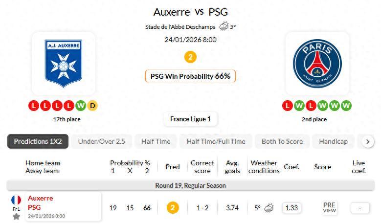 PSG''s most recent record of 7 consecutive games against Auxerre consists of no losses (Ligue 1)