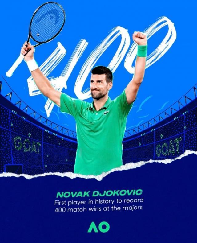 德約成首位大滿貫單打400勝球員,三項大滿貫實現百勝
