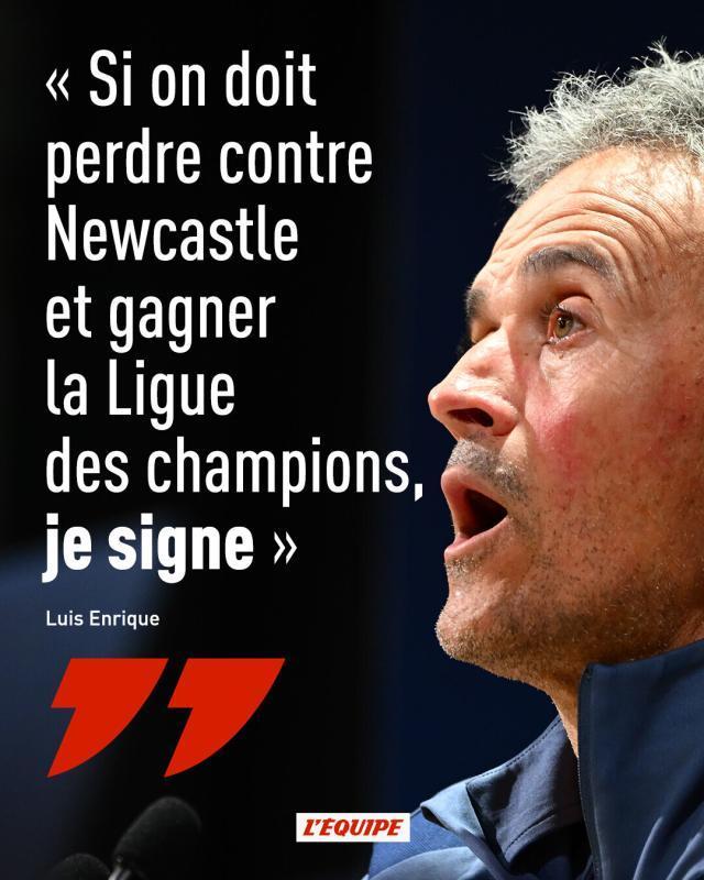 到了對陣紐卡的比賽之前,有記者問起之前巴黎對賽紐卡的疲軟(2023年10月小組賽曾被紐卡1比4暴揍),恩裏克又一次發出怪論:如果輸給紐卡斯爾,之後我們可以拿到歐冠,我寧願輸給紐卡斯爾。