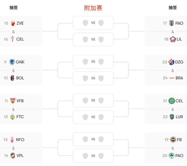 附加賽抽籤將於北京時間1月30日(本週五)20點進行,兩回合比賽則在3周之後:首回合2月19日,次回合2月26日(當地時間)。