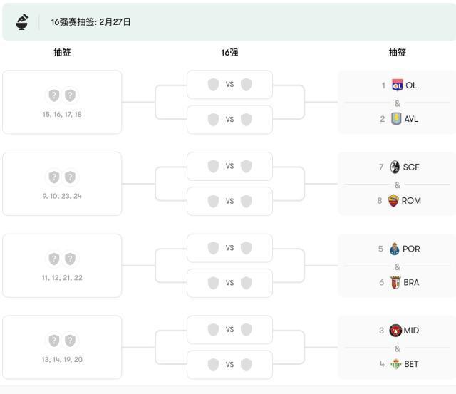 今晨,歐聯杯聯賽階段第8輪即最後一輪戰罷,排名座次及晉級球隊塵埃落定。里昂、阿斯頓維拉、中日德蘭、皇家貝蒂斯、波爾圖、布拉加、弗賴堡、羅馬分列前8名,直接晉級16強淘汰賽。其中五大聯賽各有一隊進入前八,葡超繼續強勢,有波爾圖和布拉加兩隊。