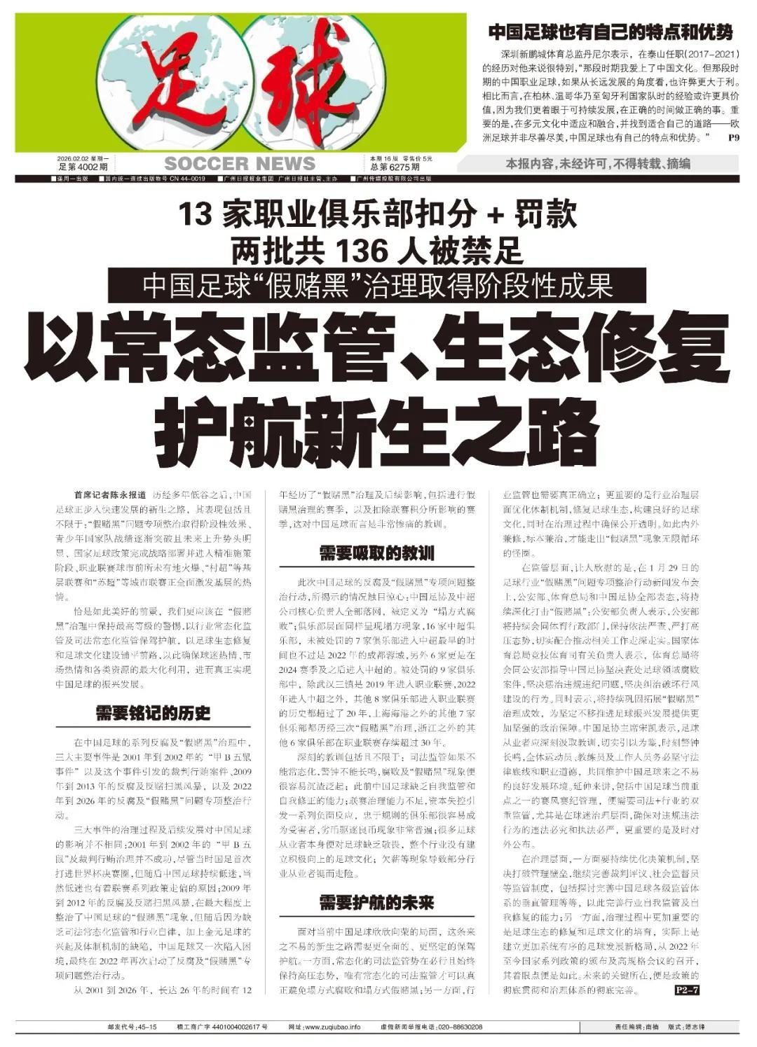 恰是如此美好的前景,我們更應該在“假賭黑”治理中保持最高等級的警惕,以行業常態化監管及司法常態化監管保駕護航,以足球生態修復和足球文化建設鋪平前路,以此確保球迷熱情、市場熱情和各類資源的最大化利用,進而真正實現中國足球的振興發展。