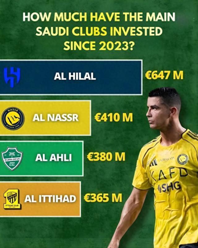 2023年以來,沙特各大俱樂部引援力度對比,利雅得新月遙遙領先。